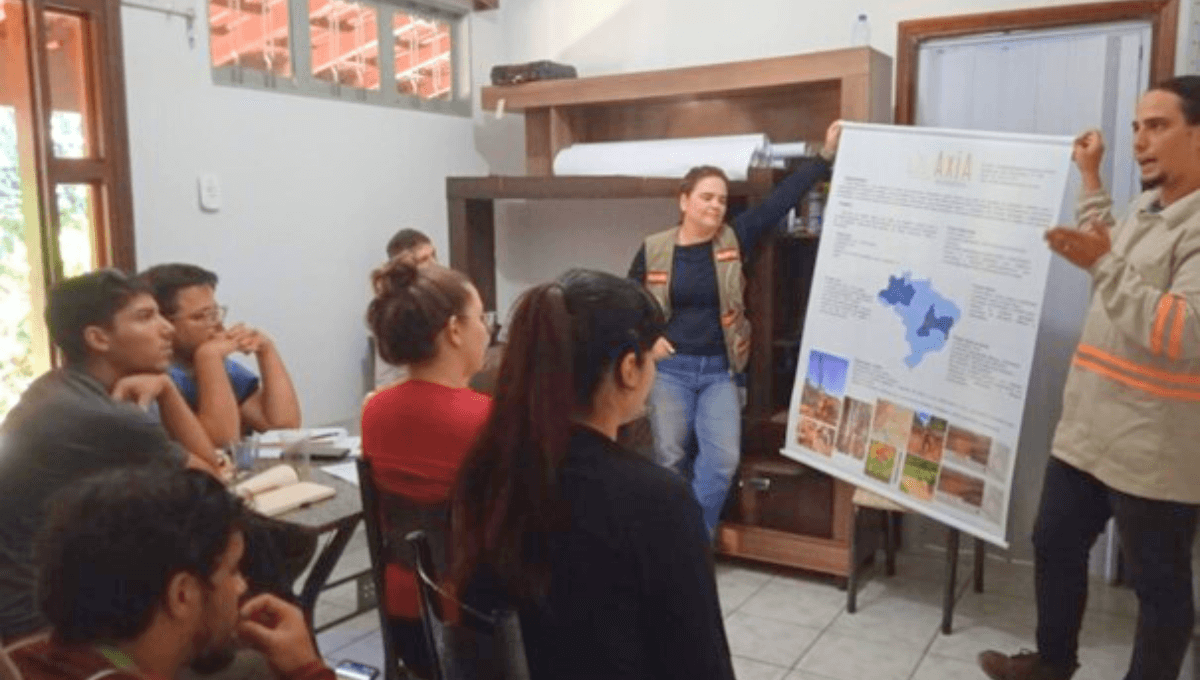 Estas disciplinas são ofertadas no oitavo período da graduação onde os alunos que estão próximos a se formar, tem uma experiencia sobre o mercado de trabalho. A visita contou com a apresentação do projeto de Bom Jardim (Fig. 1) com uma mostra de furo de sondagem do projeto e discussão sobre a mineralogia com os professores Drs. Estela Leal e Lincoln Siepierski (Fig. 2).