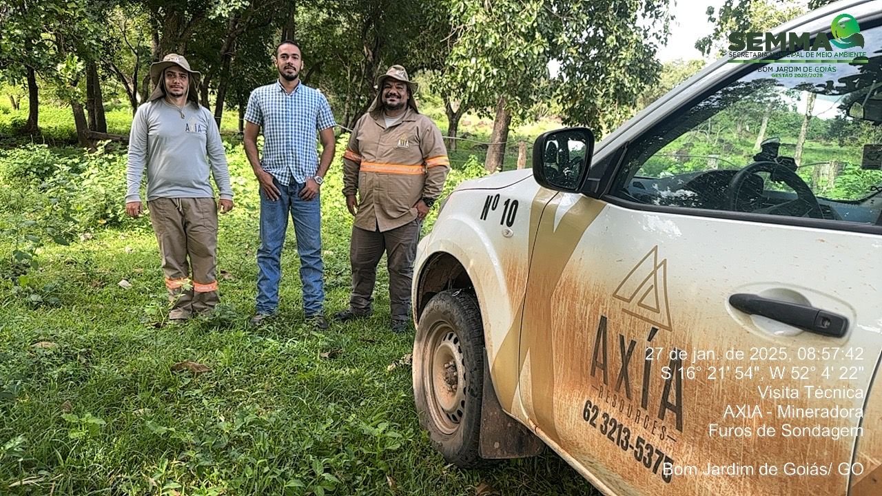 The new Secretary of the Environment of Bom Jardim de Goiás, Bleinier Pereira de Oliveira, along with former Secretary of the Environment, Guedes, visited the research areas of Axia Mineração to gain firsthand insight into the company’s activities and its commitment to environmental best practices.